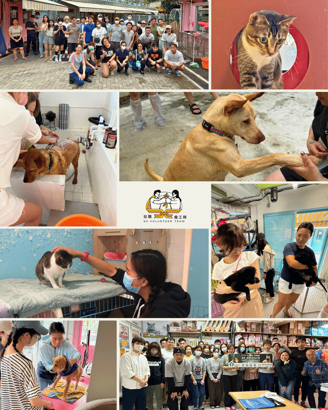 (2)動物權益義工項目:保護毛孩,建立安全的生活空間。 「社職義工隊」自成立以來致力於動物權益服務,透過清潔收容所、陪伴動物、提供照顧和協助宣傳等,改善毛孩的生活環境,並提升公眾對動物權益的關注。這一年來,很高興看到多位社職義工成為義工領袖,定期帶領社職義工隊的狗舍和貓舍清潔日,每位都獨當一面。