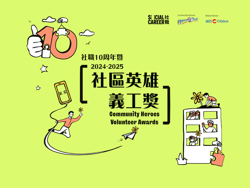 今年我們繼續獲海洋公園作為社區夥伴,以及城巴作為媒體夥伴支持,於2025年12月14日(星期日),香港海洋公園威威劇場將舉行「社職十周年暨社區英雄義工獎 2024-2025 頒獎典禮」,超過300位義工、NGO代表、企業領袖及服務使用者將齊聚一堂,共同慶祝國際義工日,並表揚過去一年最傑出的企業、機構及個人義工,見證「Good. For You.」助人助己的精神。