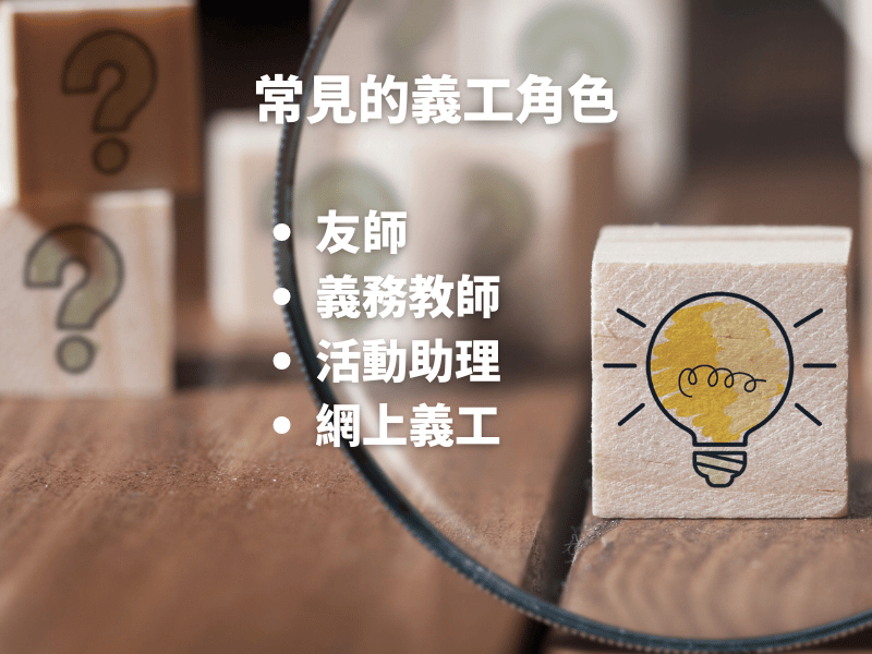 ・釐清動機:你希望透過義工服務實現什麼?是想幫助有學業困難的小朋友,還是希望陪伴弱勢兒童?